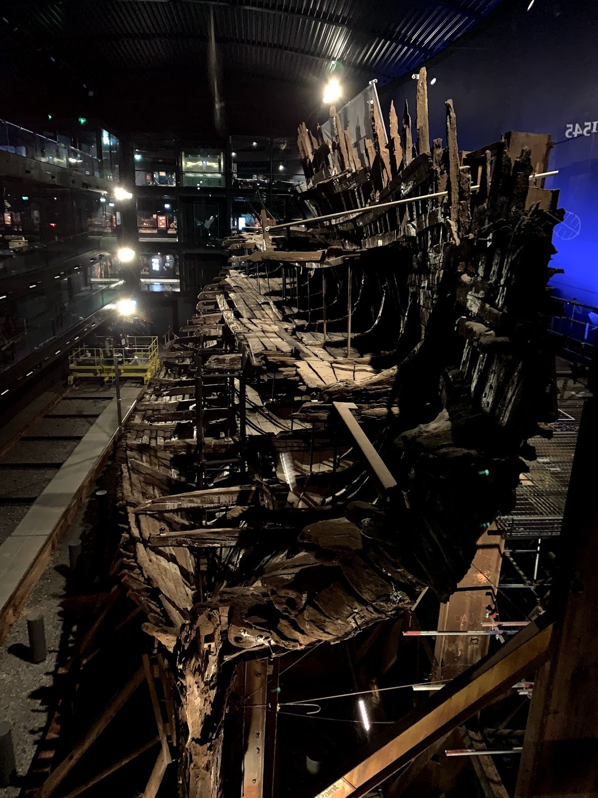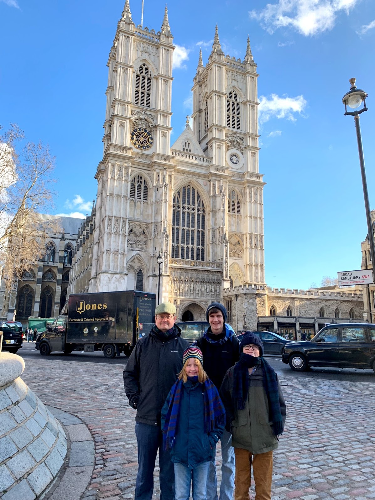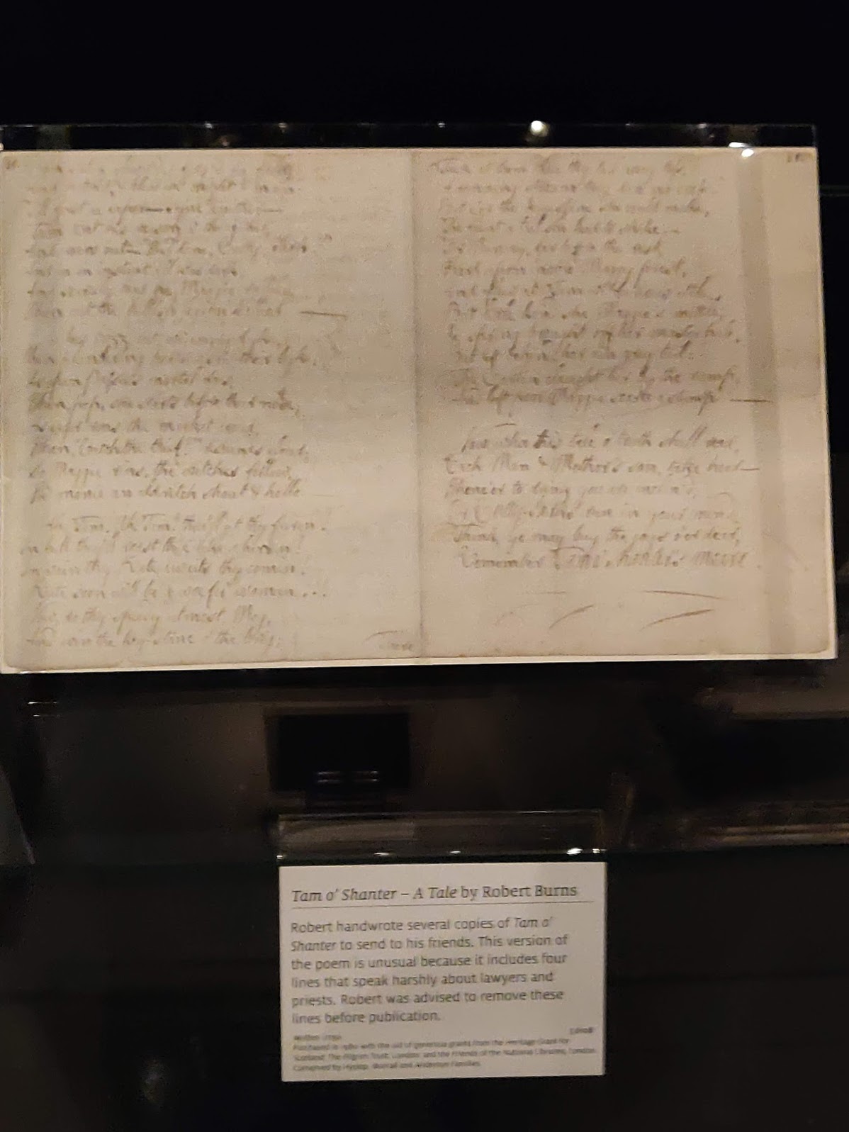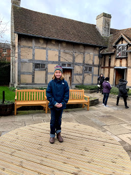 At 2:00 pm we walked into a candlelit room inside the Globe Theatre Exhibition Hall. It was a small 300 seat Jacobean (late 1600’s) period theatre. It was completed in 2013 and is named the Sam Wanamaker Theatre after the American who had a dream to bring Shakespeare’s Globe back to life! Inside we sat in the pit, a small area just in front of the stage at ground level, on red cushioned benches. Seamus and I were on the end seats and could literally reach out and touch the stage. The actors often used the small staircase in the pit area. The play we say was MacBeth!