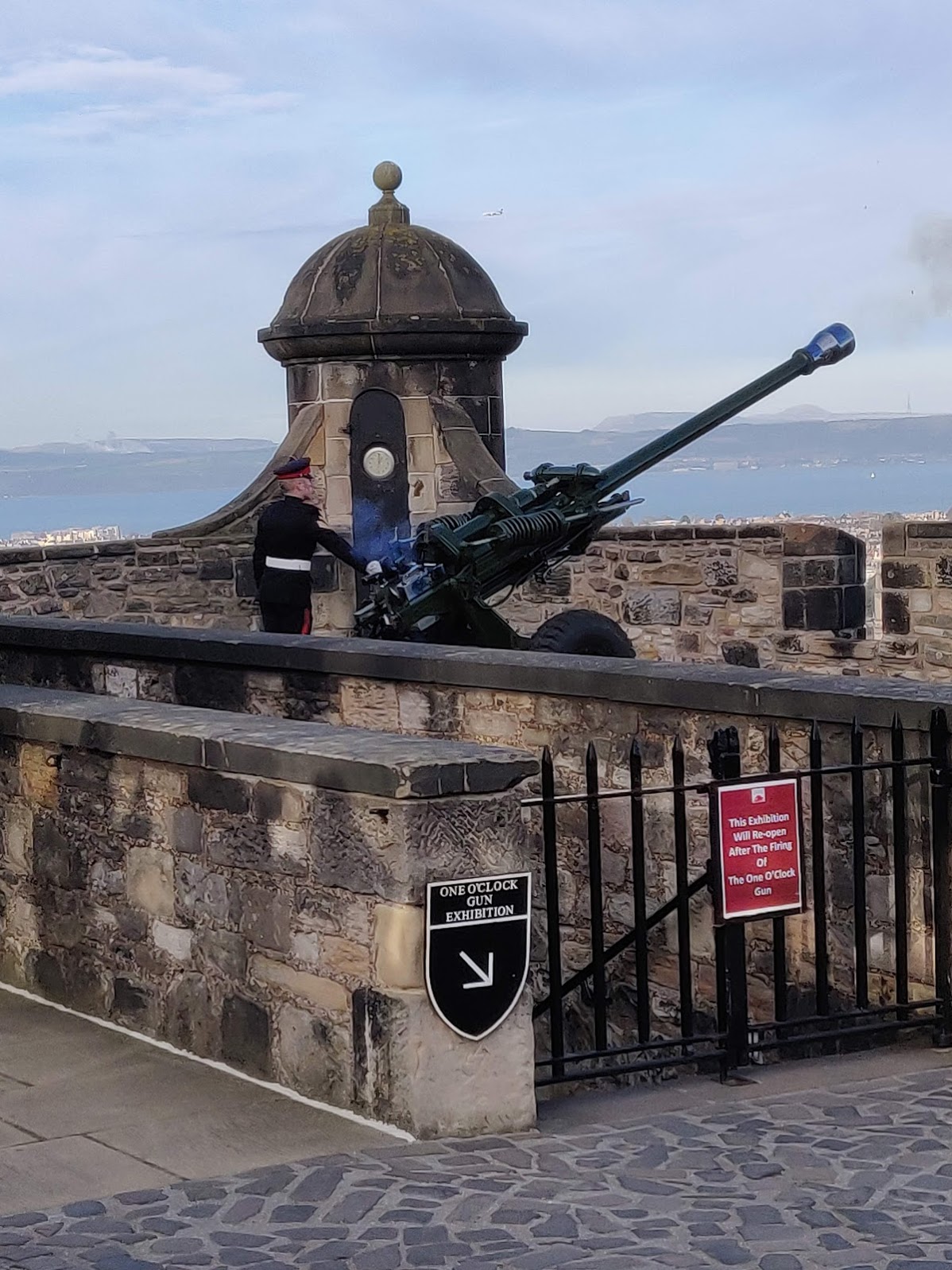 The crown jewels were impressive, but seeing the one o’clock artillery gun firing was amazing! In Edinburgh for centuries a tower near the castle had a large ball at the top. Everyday at 1:00pm it was dropped to let everyone know the exact time and to set their watches and clocks. However, it’s often foggy in the city. So it was decided in 1818 that a cannon would be shot at the same time. It could be heard all over the city and even down in the Firth of Forth where the boat docks are located. The gun is shot and ball dropped every day except Sundays, Christmas, and Good Friday. Why not these days? Well, because you should be in Church on those days and not looking at your watch!