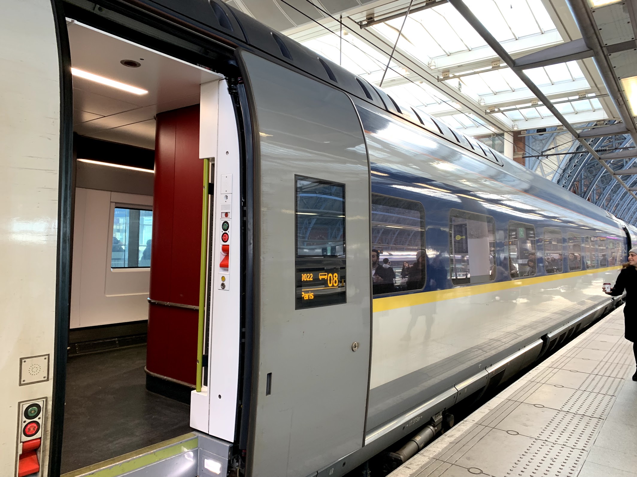 Once we finished eating our last full English breakfast, we took the Underground over to St. Pancras/Kings Cross station were we boarded the Eurostar train to Paris, France. This special high-speed train started operating soon after the Chunnel (tunnel under the English Channel) opened in May 1994. The kids were very excited to get to travel on the Eurostar. We cleared security and then had to pass through International French customs before leaving England, because once at the Gare du Nord train station in Paris there is no customs or international checkpoint. It was busy, but everything went smoothly and we made it in plenty of time to board our 11:31am train.