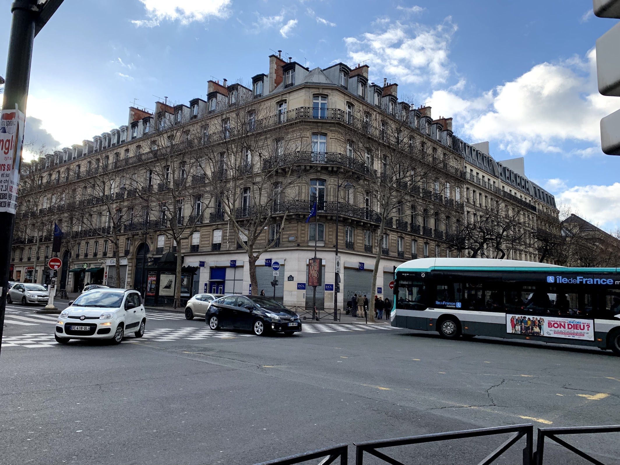 Once inside the Gare du Nord it was time to figure out which Metro line would take us close to our hotel. The RERB line was just right with only 2 stops before getting off at Sainte Michelle. After ascending the various escalators from the Metro subway we were greeting with a lovely first view of Paris! The stunning stone 4 story buildings with wrought iron balconies shimmered in the sunlight. Robert aend Liam had both downloaded a street map of Paris and soon we were on our way with our little rolling luggage bouncing on through the stone sidewalks and streets of Paris!