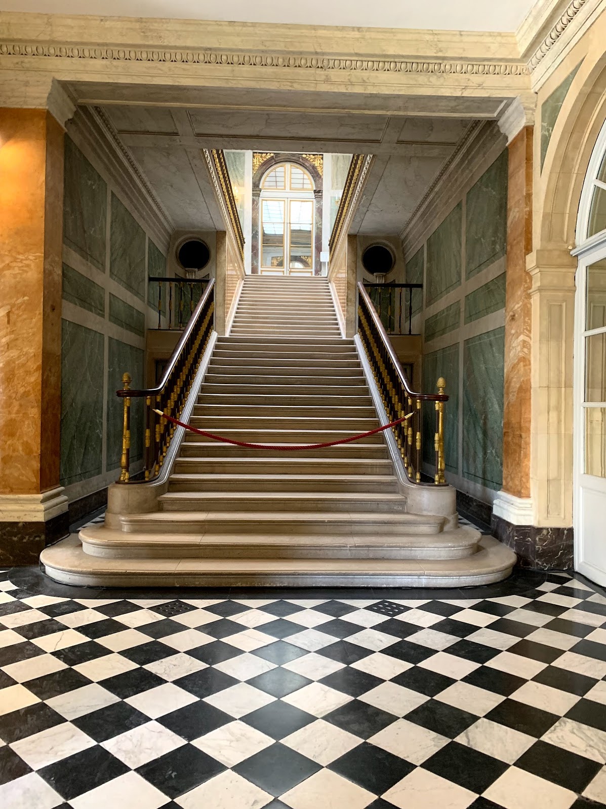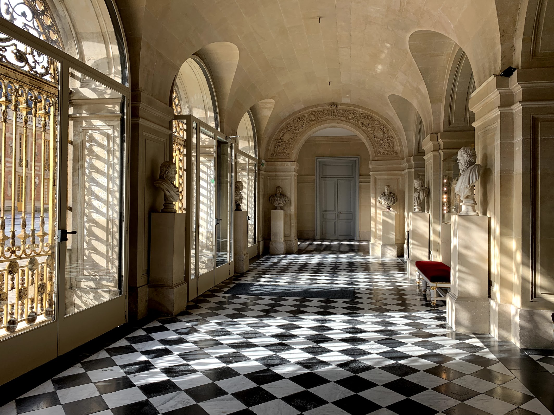 It was a bit busy and we had to wait about 20 minutes for entry into the palace, but it was worth the wait! Once inside our eyes were met with elegant marble columns and a long open hall with large doors that brought in the light from the gardens beyond. This was the least decorated part of the palace. Then it was time to put on our anti glitter goggles and head into the royal apartments!