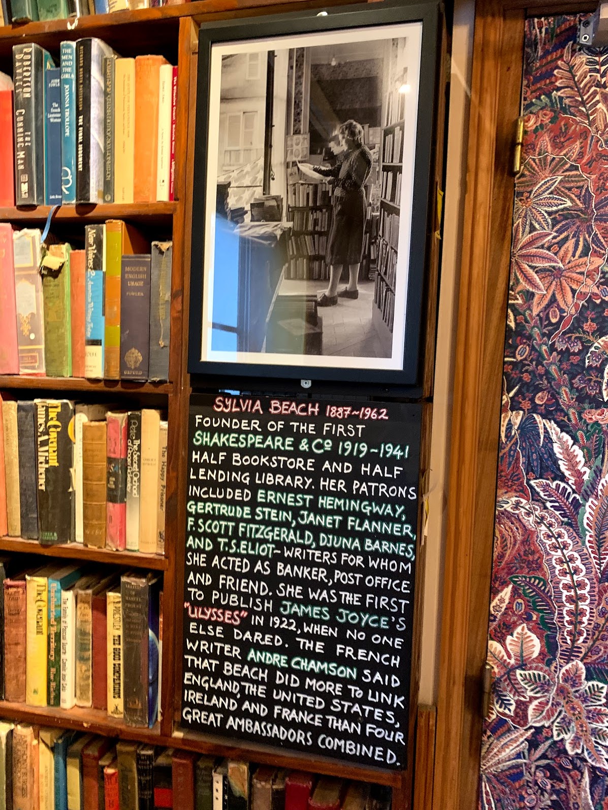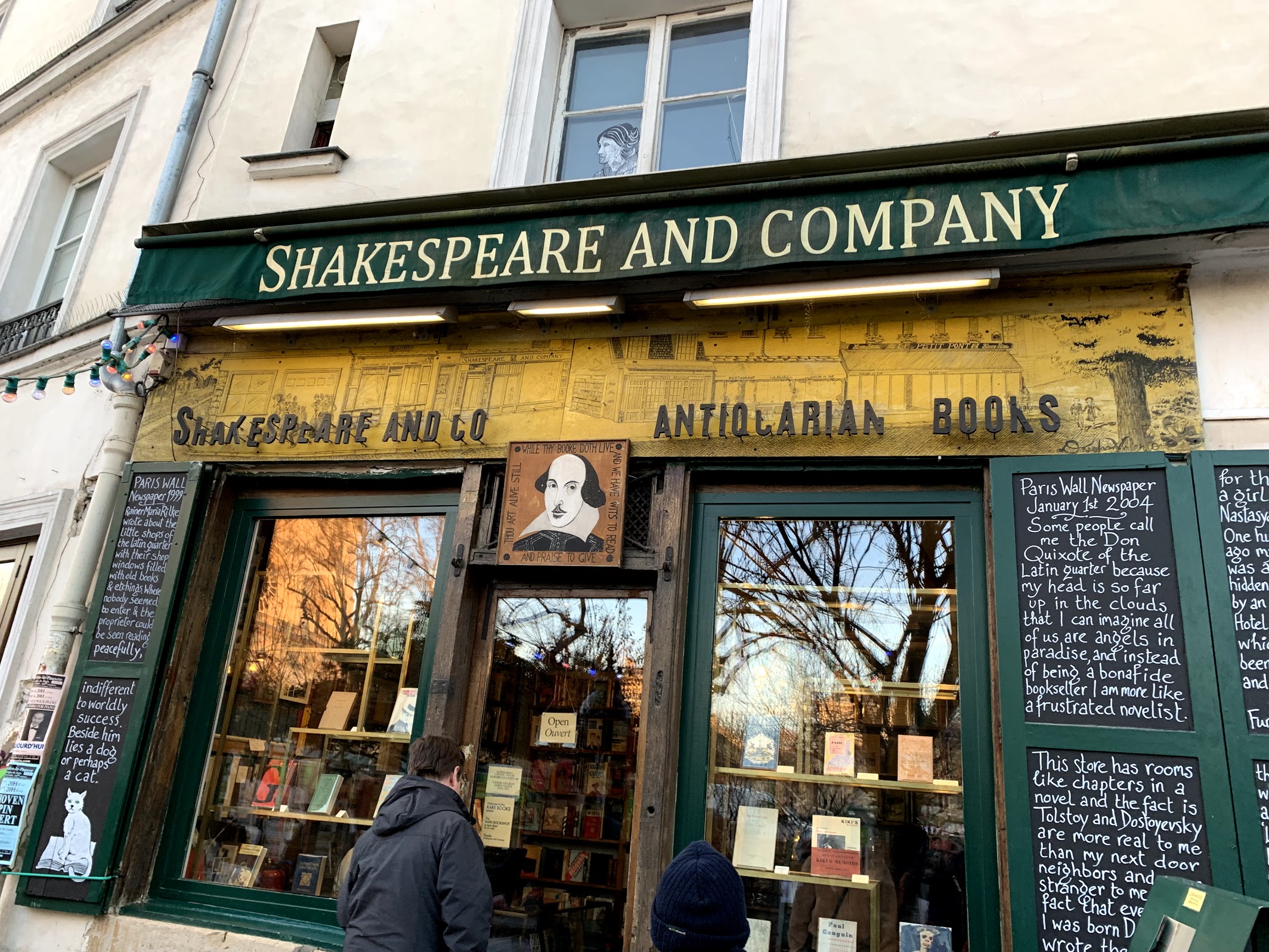 Once back in Paris we had a bit of time until the shops closed so we did a little shopping and visited a famous Parisian bookstore. Ironically it is called Shakespeare and Company and is located along the Square of Notre Dame. It was founded by a Mrs. Beach who encouraged such writers as Elliot , Fitzgerald, and Hemmingway to sit in her bookstore and write, inspired by the comings and goings of people, animals, and boats upon the Seine River just outside the bookstore window. Today the bookstore offers large collections of modern and antiques books. I found a lovely little leather bound copy of my favorite Shakespearean play Much Ado About Nothing. It was printed in 1913. Unfortunately Faywen didn’t find a nice old copy of any of her favorite plays, but she enjoyed looking at all the old books on the shelves. We stopped by the local market and grabbed some food for a nice dinner back