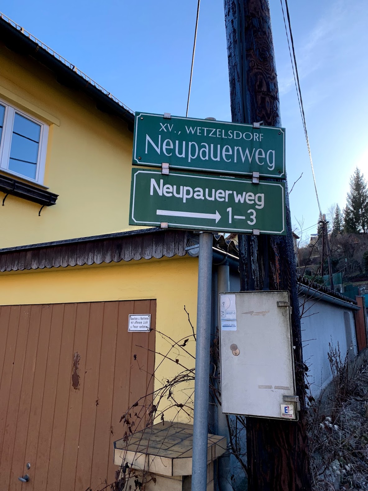 We live at 3 Neupauerweg at the top of the hill!